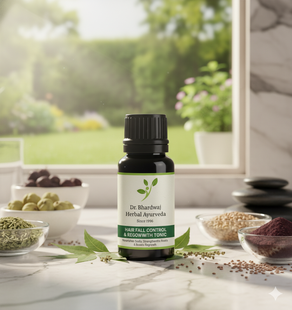 Get visible hair regrowth in just 15 days. This herbal tonic nourishes the scalp, strengthens roots, and promotes healthy new hair growth. Formulated using ancient Ayurvedic recipes and modern extraction techniques.
